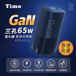 TOTOLINK 65W GaN氮化鎵 2C1A PD快充 3孔快速充電器 電源供應器 支援筆電 蘋果iPhone 安卓手機快充-TG65W