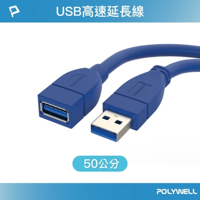 POLYWELL USB3.0 Type-A公對A母 3A高速延長線 50公分$9883折