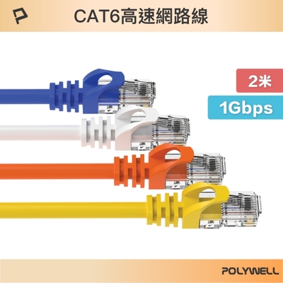 POLYWELL CAT6 高速乙太網路線 UTP 1Gbps 2M$10683折