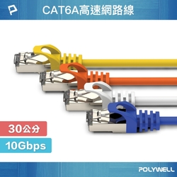POLYWELL CAT6A 超高速乙太網路線 S/FTP 10Gbps 30公分$10683折