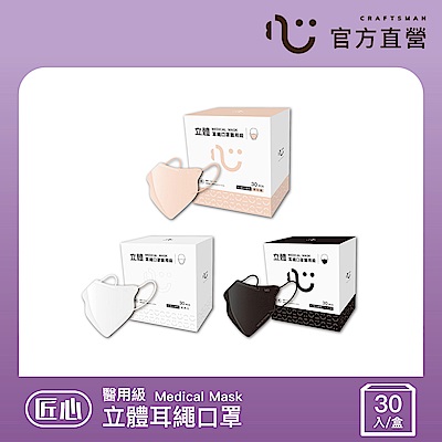 【匠心】任選-3D耳繩版立體醫療口罩-M女性小臉/L成人適用 (30入/盒)$113