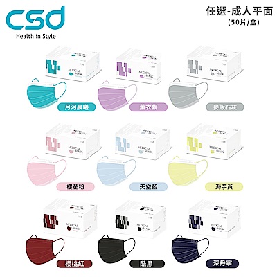 【CSD中衛】任選-中衛成人醫療平面口罩 (50片/盒)