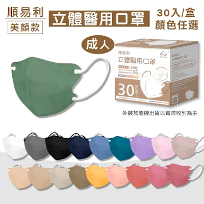 【順易利】成人3D立體醫用口罩 (美顏款M號)顏色任選 30入/盒$98