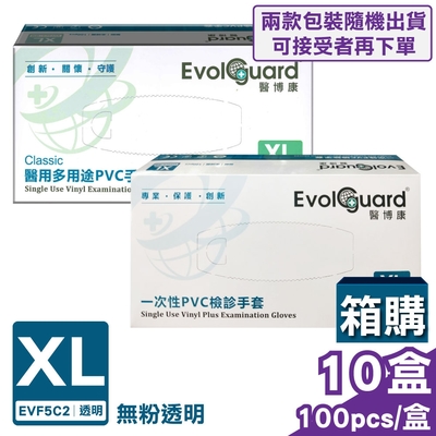(箱購) 醫博康 徐州富山 醫用多用途PVC手套/一次性檢診手套 (無粉) XL號 100pcsX10盒