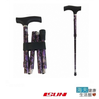 海夫健康生活館 宜山 折疊伸縮手杖 仿蕾絲紫/6段調高/楓木握把/台灣製造 CAP-5601