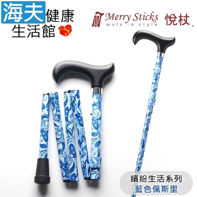 Merry Sticks 悅杖醫療用手杖 未滅菌 海夫健康生活館 繽紛生活系列 5段式 輕巧折疊手杖 藍色佩斯里