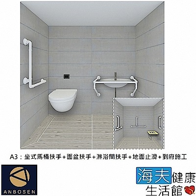 安博森 海夫 無障礙施工 浴室超值組-坐式馬桶+面盆+淋浴間扶手+地面止滑+到府施工 A3