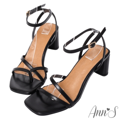 Ann’S一雙不對稱設計的方頭粗跟涼鞋-黑(版型偏小)(季末換季出清)