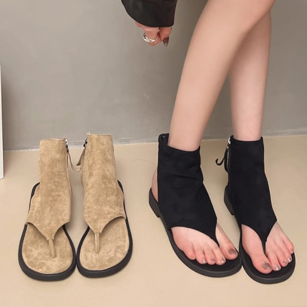 山打努SANDARU-涼鞋 人字夾腳後拉鍊羅馬鞋-杏