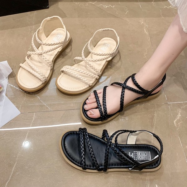 【LN】現+預 休閒純色單邊細條編織羅馬鞋(平底/涼鞋/休閒鞋)