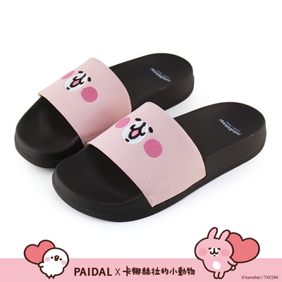 Paidal x 卡娜赫拉的小動物 粉紅兔兔萌臉電繡一片式運動拖鞋$65685折