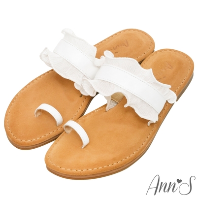 Ann’S水洗牛皮-立體蕾絲夾腳套指圓頭涼鞋-白
