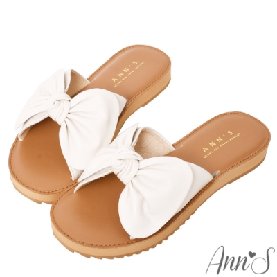 Ann’S全糖風格-柔軟綿羊皮大蝴蝶結平底涼拖鞋-米白(版型偏小)