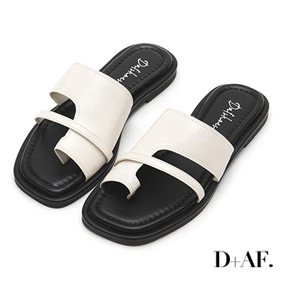D+AF 愜意方頭寬版套趾平底拖鞋 米白