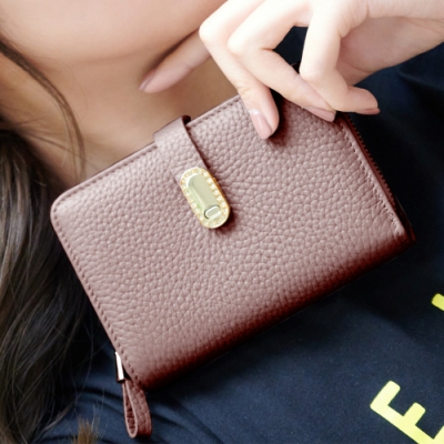 2R 掌紋牛皮Dazzling雙層設計妲姿短夾 清漾粉$823