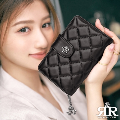 2R 綿霜羊皮Kerry菱格風琴卡片短夾 經典黑$823