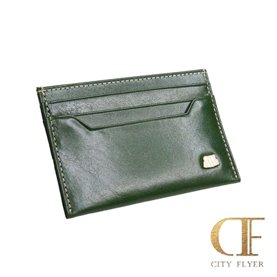 【CITY FLYER】城市旅者義大利進口植鞣牛皮真皮輕巧隨手卡片收納夾 綠色