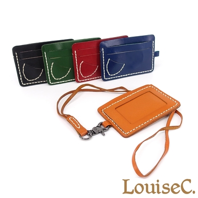 【 Tree House 】LouiseC. 植鞣革牛皮手縫線設計工作證件套卡夾(5色)-附頸掛吊繩 CC2515