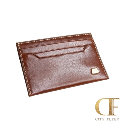 【CITY FLYER】城市旅者義大利進口植鞣牛皮真皮輕巧隨手卡片收納夾 咖啡色
