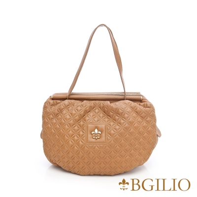 義大利BGilio - 時尚菱格紋羊皮圓筒肩背包(大款) - 杏色 1565.002-04$4,980