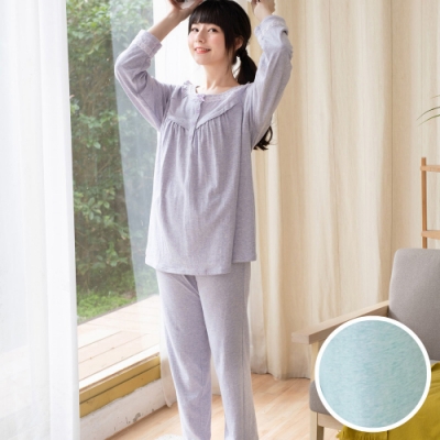 華歌爾睡衣 睡眠研究系列 M-LL長袖褲裝(藍綠) 圓領半開襟-遠紅外線-防蹣抗菌$1,590