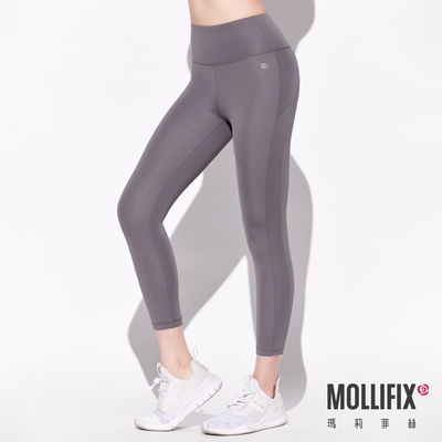 Mollifix 瑪莉菲絲 環保弧線拼接七分動塑褲 (日暮灰)瑜珈服、Legging 暢貨出清$599