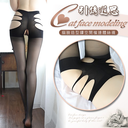 引誘遐思!貓臉造型鏤空免脫開檔連體絲襪