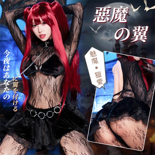 商店情趣比基尼系列 情趣比基尼!惡魔之翼魅影裸背絨感酥胸蜜臀含網衣四件式套裝