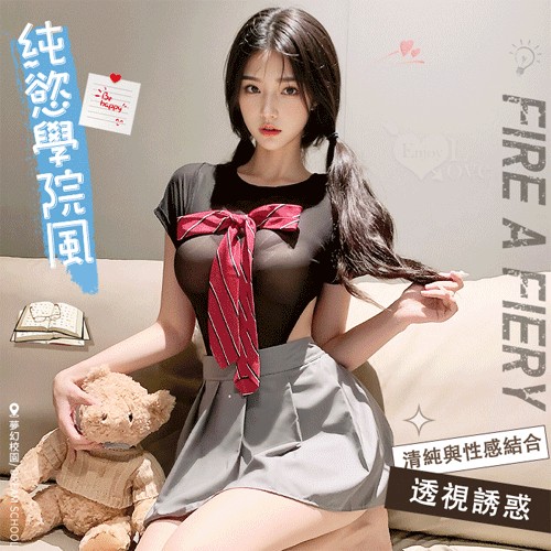 純慾蝴蝶結高衩可開襠透視連身衣百褶短裙學生扮演服