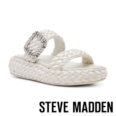 STEVE MADDEN-編織方鑽雙帶厚底拖鞋 GLITCH-白色