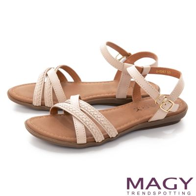 MAGY 典雅編織真皮平底涼鞋 裸色