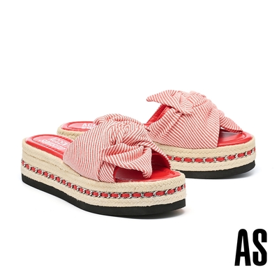拖鞋 AS 隨興優雅扭結條紋布拼接綿羊皮穿鍊草編厚底拖鞋-紅