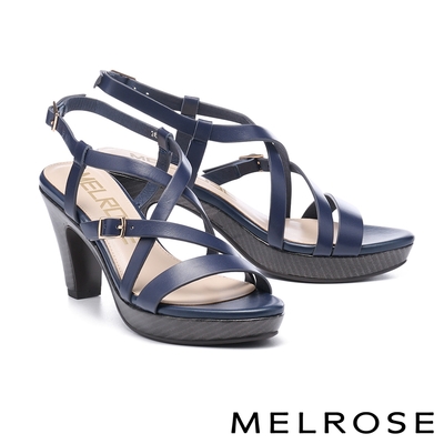 涼鞋 MELROSE 美樂斯 安定感 質感交叉條帶造型牛皮美型高跟涼鞋-藍