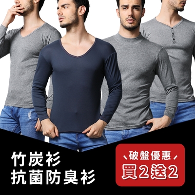 內衣 長袖T恤 多款可選【遠紅外線竹炭紗V領/半門襟/高領】【抗菌防臭速乾長袖衫】(買2送2)$552$599