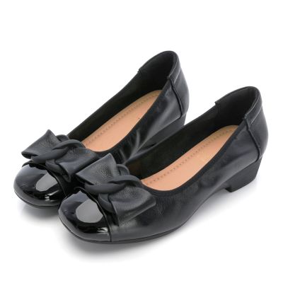 PLAYBOY 鏡面紐結真皮方頭娃娃鞋-PYD180黑