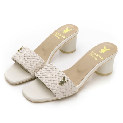 PLAYBOY 優雅氣息夏日編織粗跟涼拖鞋-PY0070杏