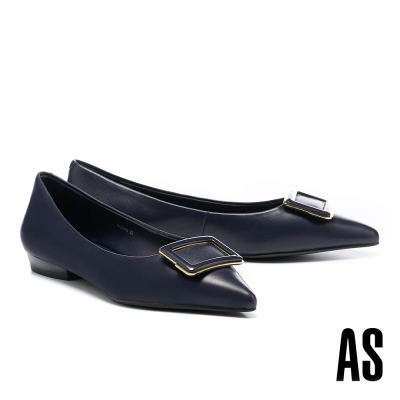 低跟鞋 AS 內斂品味方釦全羊皮尖頭低跟鞋-藍