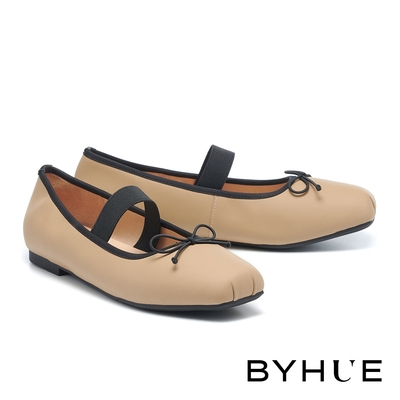 低跟鞋 BYHUE 優雅氣質蝴蝶結羊皮軟芯Q底方頭低跟鞋 - 棕