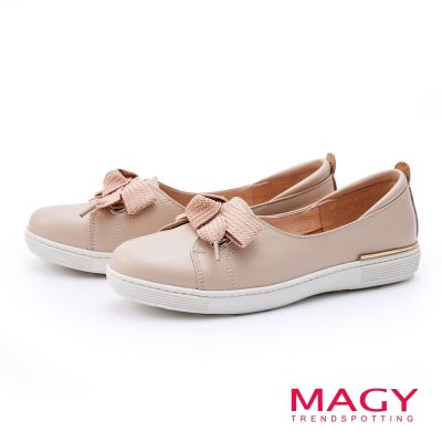 MAGY 寬版蝴蝶結綁帶休閒鞋 粉色