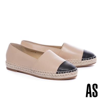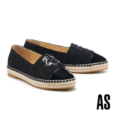 休閒鞋 AS 新經典LOGO異材質拼接草編厚底休閒鞋-深黑