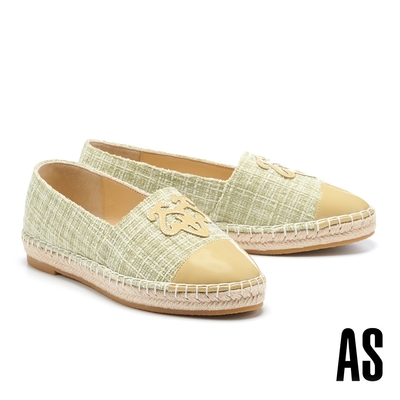 休閒鞋 AS 新經典LOGO異材質拼接草編厚底休閒鞋-綠