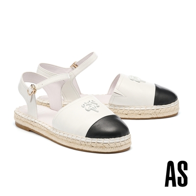 涼鞋 AS 簡約時髦新經典LOGO全真皮後繫帶草編厚底涼鞋-白