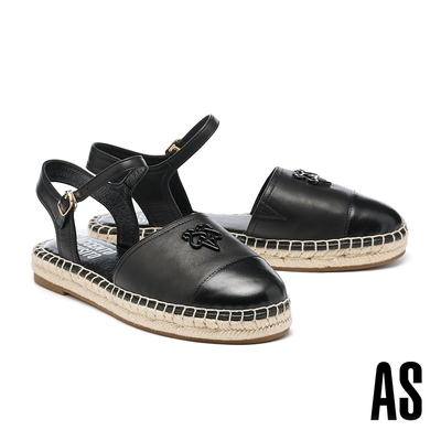 涼鞋 AS 簡約時髦新經典LOGO全真皮後繫帶草編厚底涼鞋-黑