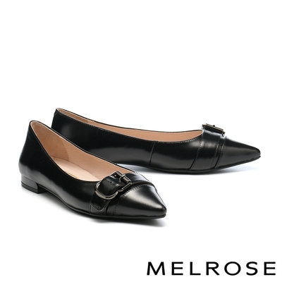 低跟鞋 MELROSE 美樂斯 典雅氣質方釦寬帶全真皮尖頭低跟鞋-黑