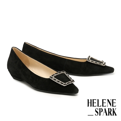 低跟鞋 HELENE_SPARK 典雅穿鍊方釦羊麂皮建築坡尖頭低跟鞋-黑