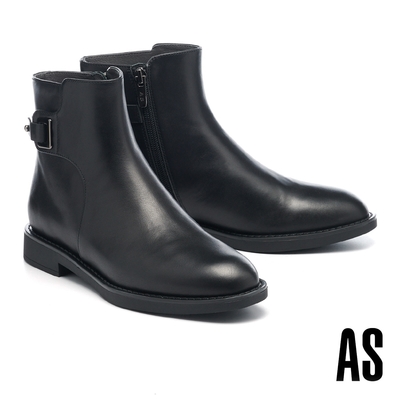 短靴 AS 簡約率性LOGO拉鍊全真皮低跟短靴-黑
