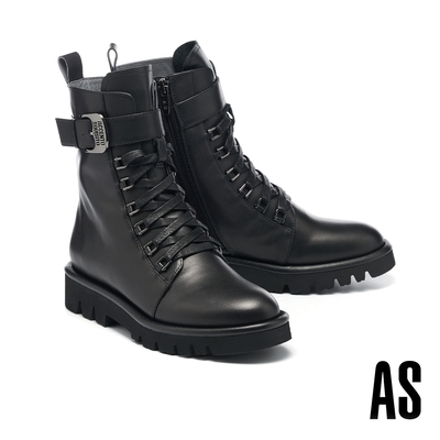 短靴 AS 帥氣時髦鏤空LOGO寬帶牛皮綁帶厚底短靴-黑