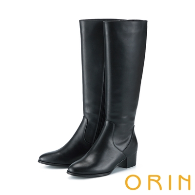 ORIN 百搭質感素色真皮中跟長靴 黑色