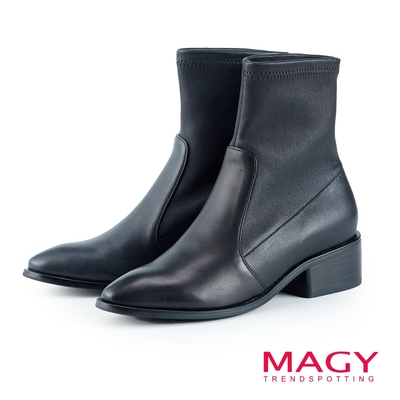 MAGY 極簡素面顯瘦彈力羊皮中跟襪靴 黑色