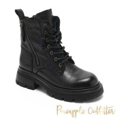 Pineapple Outfitter-BATISTA 素面綁帶拉鍊馬丁靴-黑色